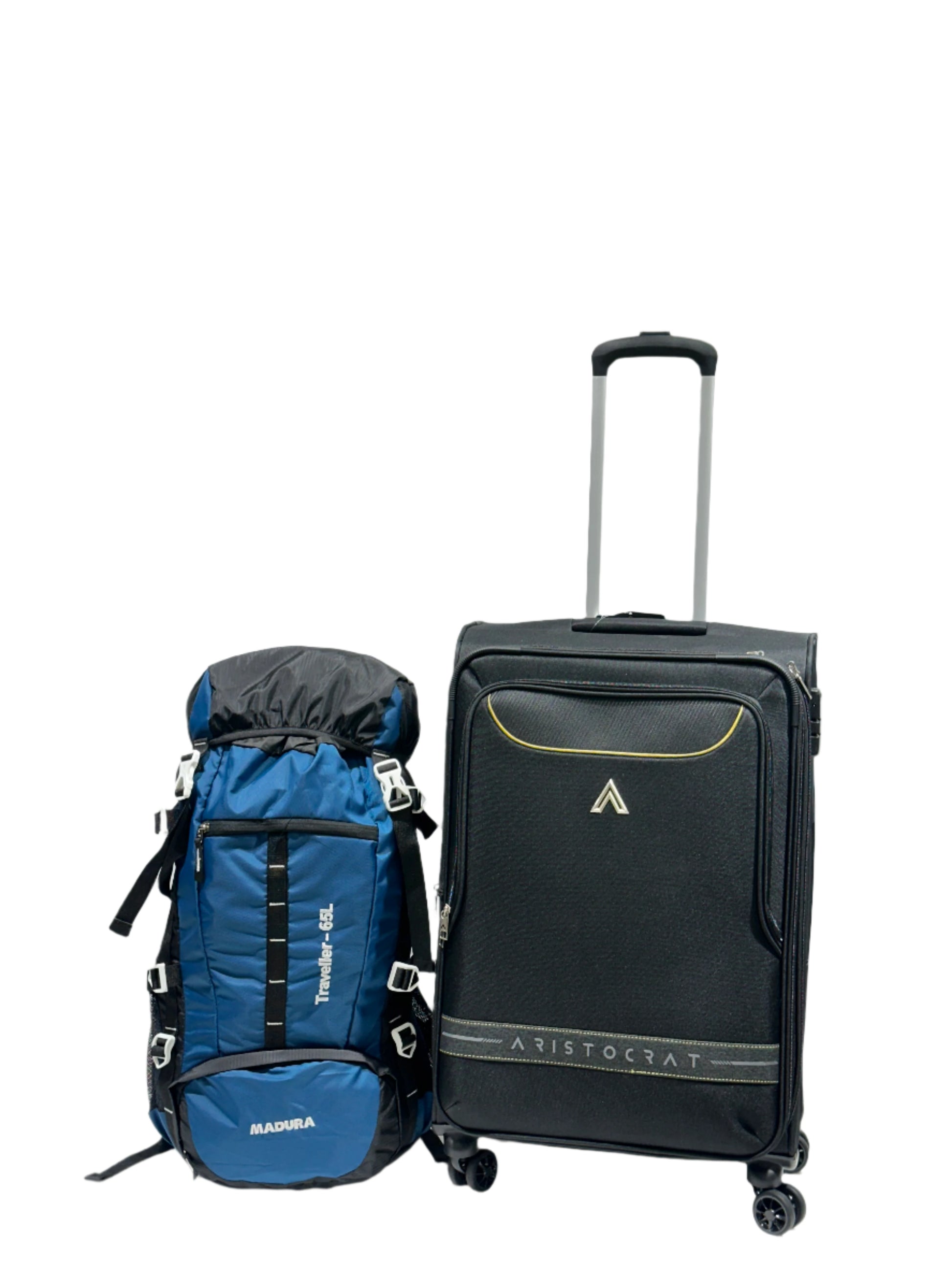 The Aristocrat Combo 3.1 features a strolly with a 5-year warranty and a trekking bag with a 1-year warranty, both equipped with 8 smooth-rolling wheels and a secure combination lock. Originally priced at ₹9050, this reliable travel set is now available at an exclusive offer price of ₹4599, combining durability, security, and value for your journeys.